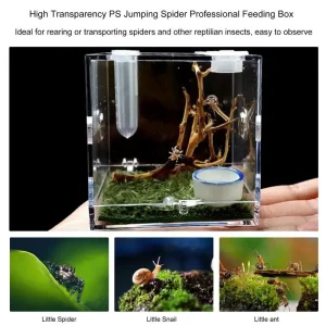 2.【CLEAR MATERIAL】 — The insect enclosure is made of acrylic, which is good for your lovely pet growth. 360-degree full view, completely transparent, clear, and bright, so that you can see the behavior of small pets anytime, anywhere. Insect breeding box is easy to observe and clean.